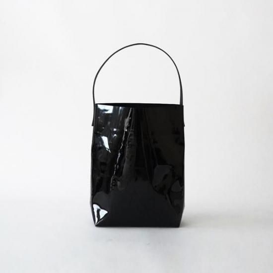 バゲットを入れるためのトートバッグ。 シボが入ったシュリンクレザーは丈夫でキズが目立ちにくいのが特長。 エナメル加工をした牛革は、水や汚れがついてもさっと拭き取れるお手入れのしやすさが魅力です。