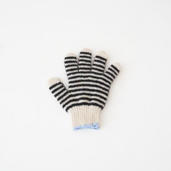 ウール素材と色使いにこだわったGUNTE。新作のボーダー柄です。 細目のピッチで主張しすぎず合わせやすくなっています。 実際に軍手を編む機械を使い、軍手と同じ工程で作られています。
