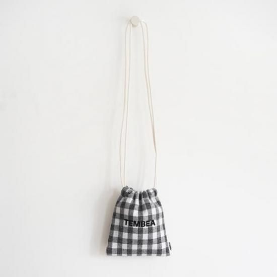 ニードルパンチ加工を施したギンガム素材の巾着POCHETTE。 裏側のウール生地が表に出ることにより起毛した風合いが特長です。 紐の付け方を輪にしているため物の出し入れがしやすく、斜め掛けで使うことも出来ます。  スマホ、お財布、鍵など必要最低限のものを入れて持ち歩く時に選びたいサイズです。