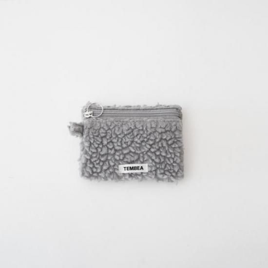 ウールのボア素材を使ったマチのないポーチ。TEMBEAの刺繍入り。 カードや小銭、イヤホンなどの収納にも。 TASUKI STRAPに付けて使うこともできます。